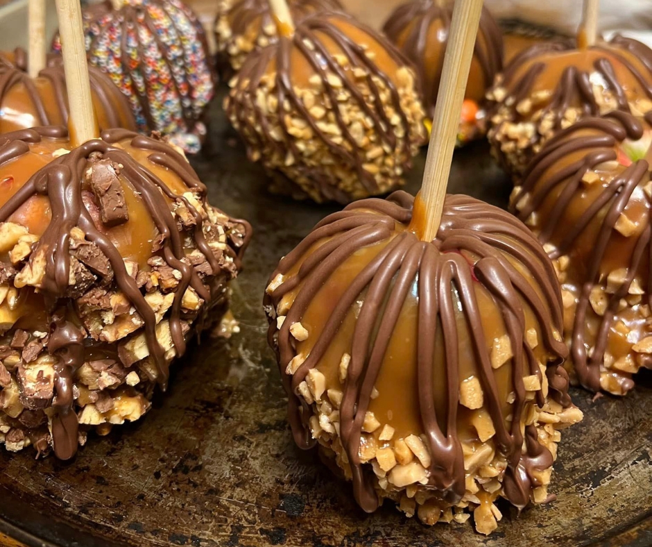 Six (6) of Miss Tiesma's famous hand-decorated decadent caramel apples. Ready to pickup upon close of auction!
